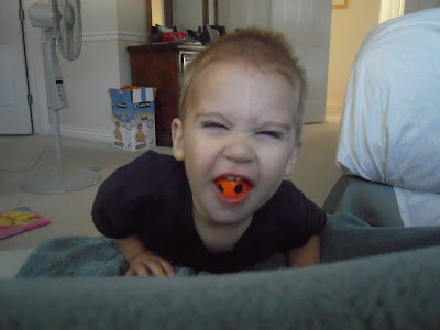 I love this little monster though. he has such a cute way of walking on his toes. It is so random that it cracks me up every time. He is such an animal lover. There is this newer commercial on with those huge horses and a dog. His focus is un-deviated for those 2 minutes as he screams with delight and points and spins at the sight. He loves the horses out our window at the horse clinic. And he is a daddy's boy. Always wanting to wrestle or cuddle with Rich. He is the BEST at going to sleep. He goes down wide awake, quietly. As long as he has a blankie and his binki. And since Gavin has come home, he is so concerned with him. Always checking on him when he is sleeping and trying to give him a binki when he cries. He runs and points with delight when he sees Gavin. Too cute. Max is a wonder. So different from Sophie and Peter. Love that kid!!